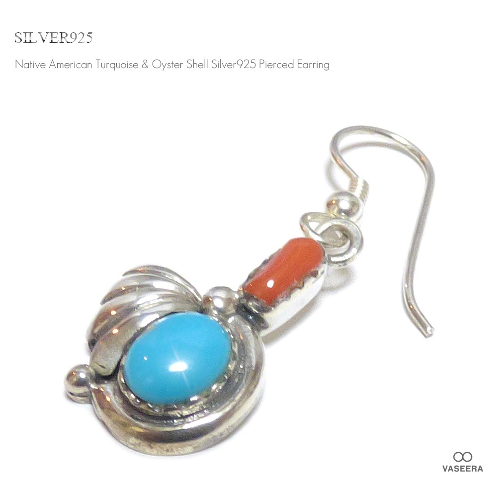 【単品販売(一個)】 ネイティブアメリカン ハンドメイド ターコイズ&オイスターシェル シルバー925 ジプシーピアス(フックピア...