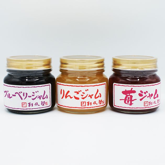 利久堂手造りジャム3種箱入(手造りりんごジャム、手造りブルーベリージャム、手造り苺ジャム)