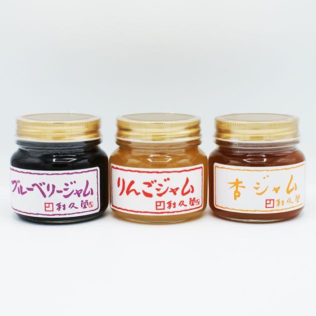 利久堂手造りジャム3種箱入(手造りりんごジャム、手造り杏ジャム、手造りブルーベリージャム)