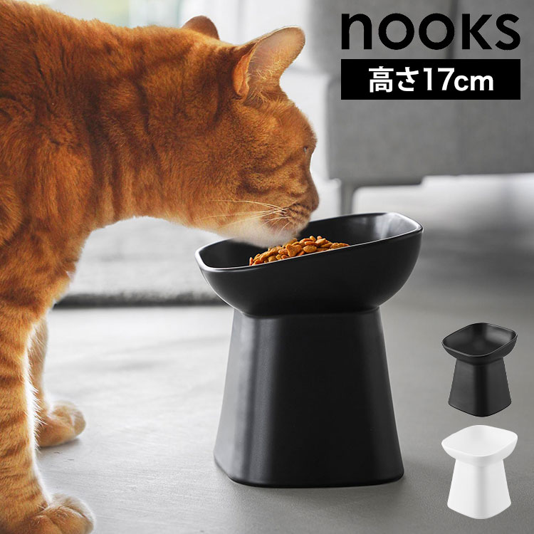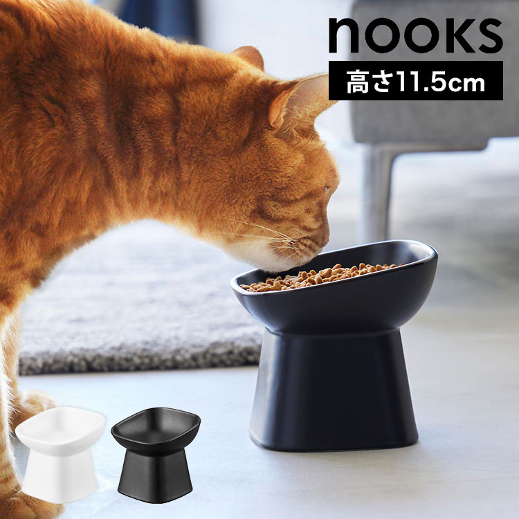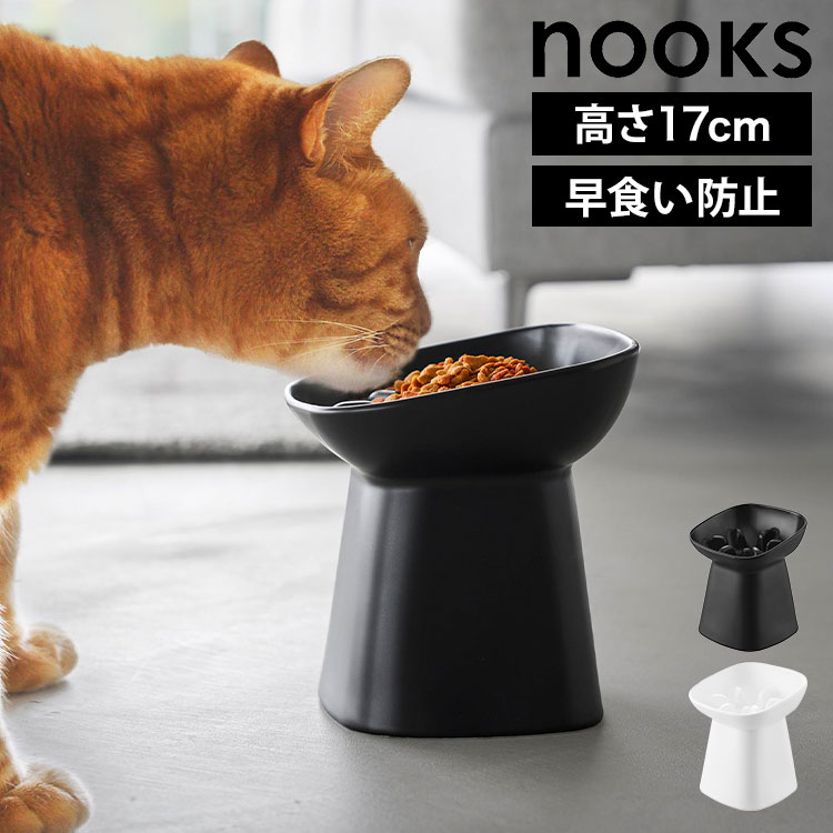 山崎実業 早食い防止ペットフードボウルスタンド 斜めハイタイプ ヌークス 10239 10240 ホワイト ブラック nooks ...