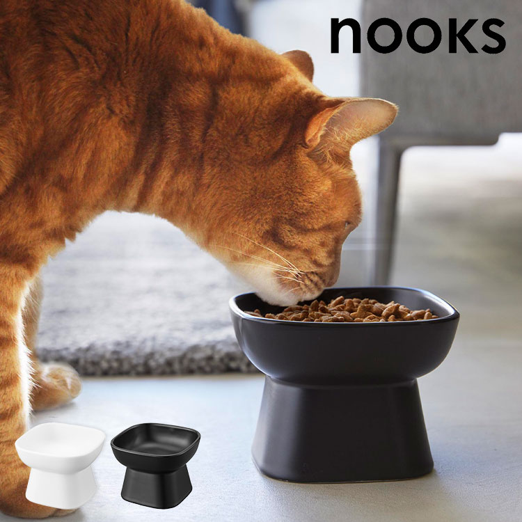 山崎実業 食べやすい高さ陶器ペットフードボウル ヌークス 1779 1780 ホワイト ブラック nooks 公式 犬 猫 エサ皿...
