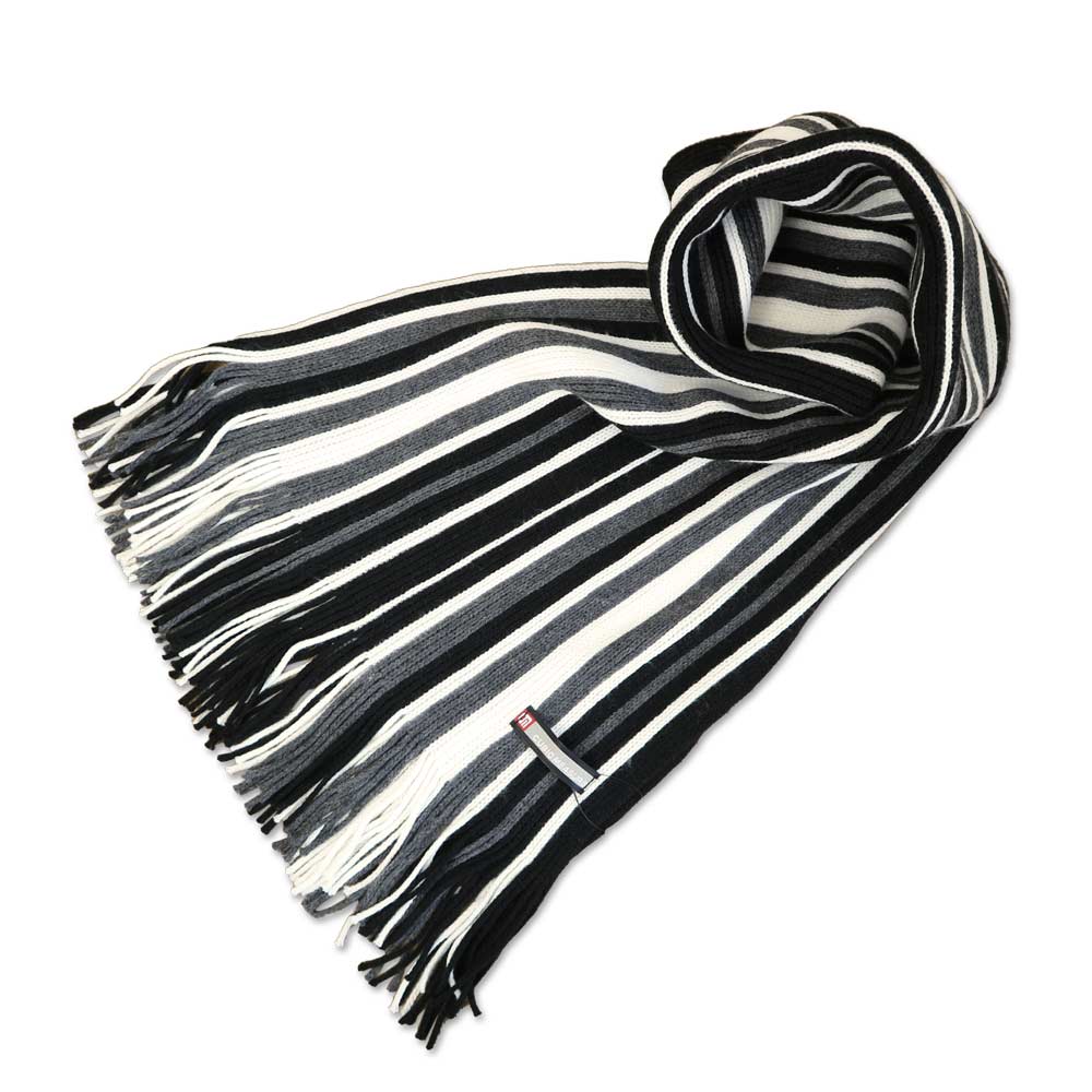 CUBIC MEASURE(キュービックメジャー) ニットマフラー メンズ アクリル100% 白×黒×グレー ストライプ 0221