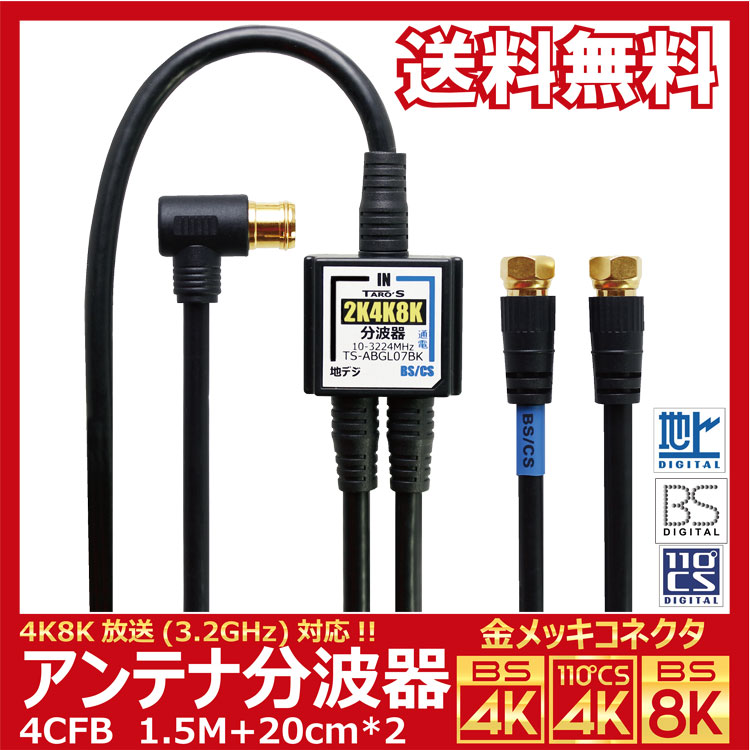 【送料無料 ネコポス便】TARO\'S アンテナ分波器 入力/出力一体型ケーブル付き 4K8K放送(3224MHz)/BS/CS/...