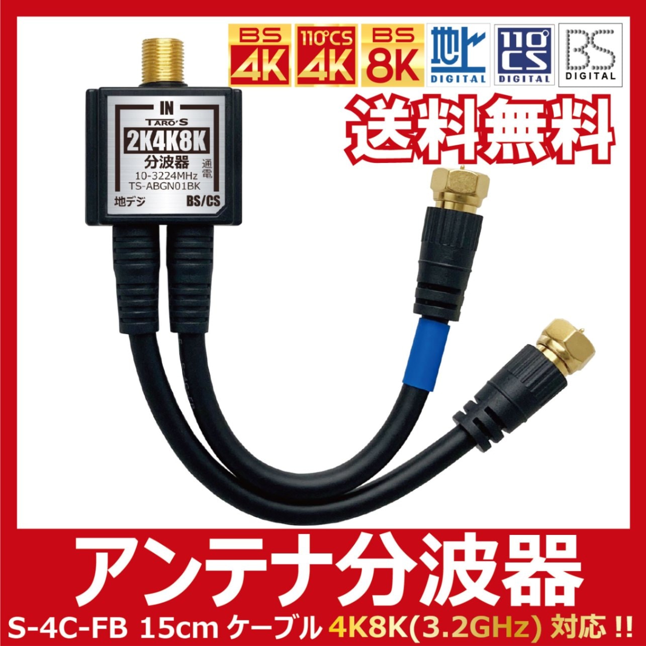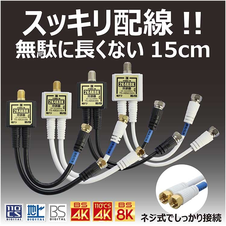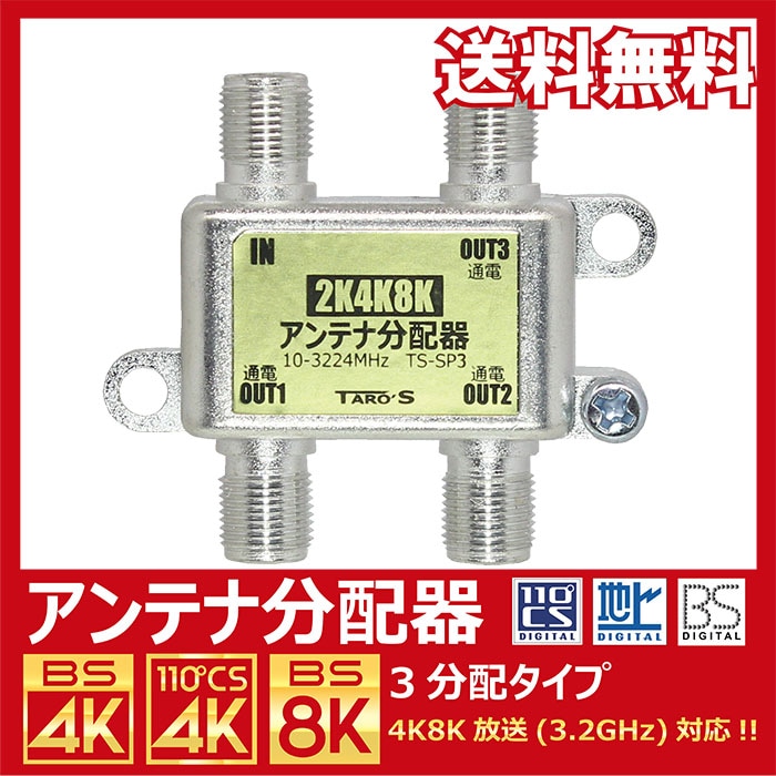 TARO\'S アンテナ分波器 入力/出力一体型ケーブル付き 4K8K放送(3224MHz)/BS/CS/地デジ/CATV 対応 ...