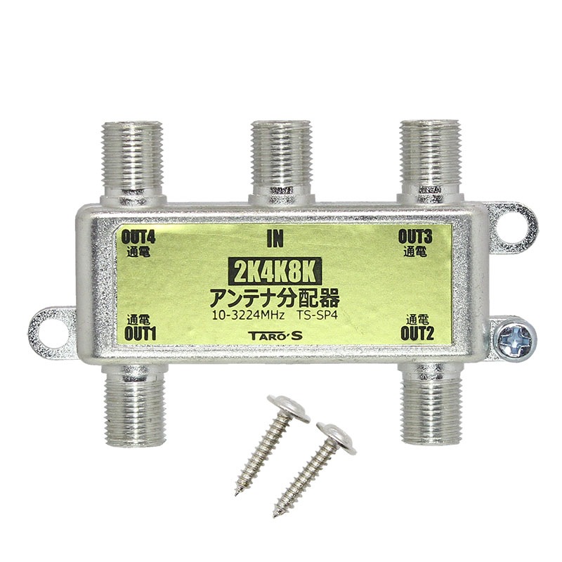 【送料無料 ネコポス便】アンテナ分配器 2K4K8K(3224MHZ)放送・地デジ・BS・CS・CATV対応 4分配 全端子電流通...