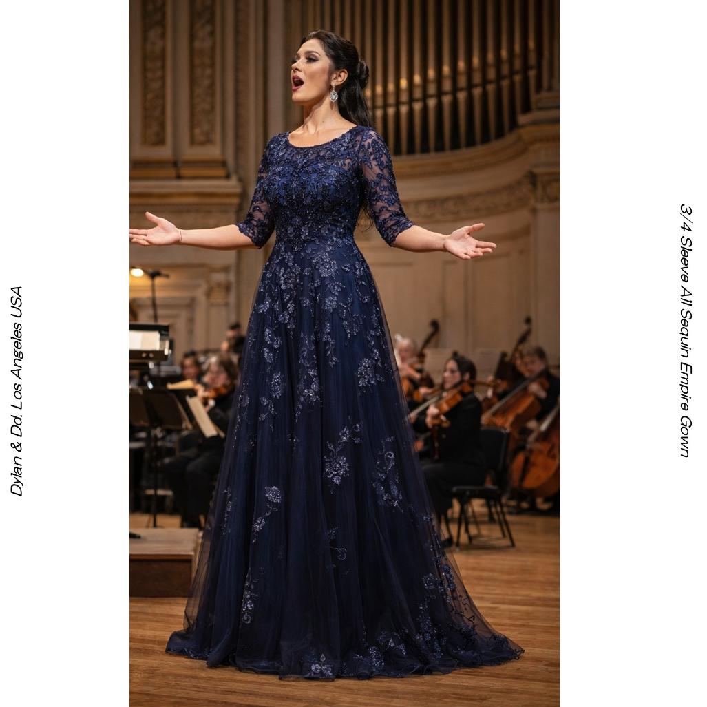 Dylan & Davids シルバー チャコール スパンコール 七分袖 エンパイアドレス(演奏会・マザーズ)UW351257