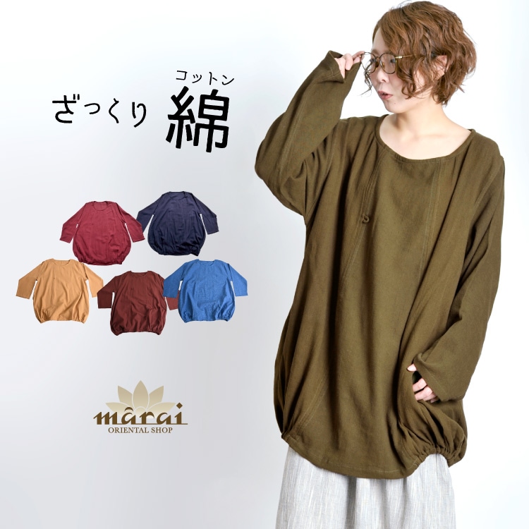 洗練された大人アジアンを演出。長袖ぐるりんチュニックワンピース