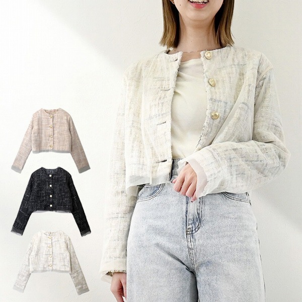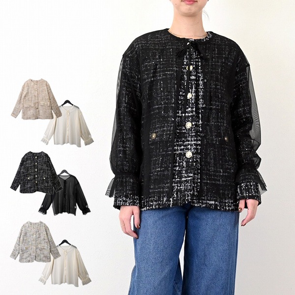 えりがわりブルゾン/ブラック/三河木綿刺し子織