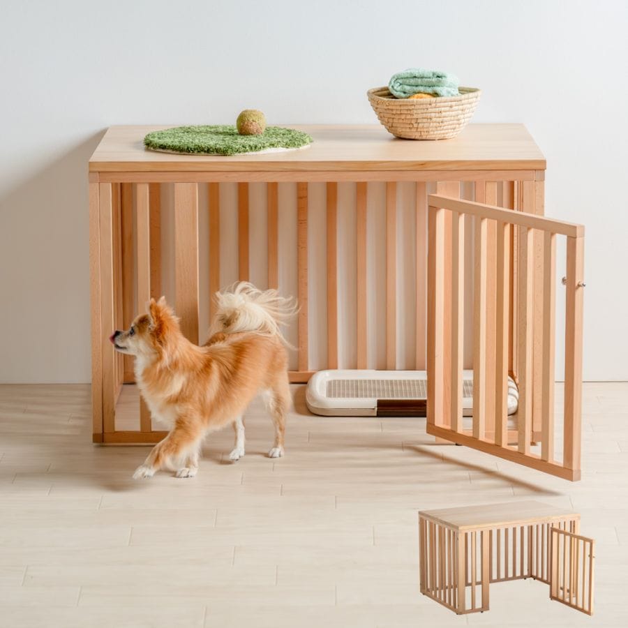 「【木製・組立式】バリアフリーケージ」 ペットサークル 小型犬 ペットケージ 室内 老犬 シニア犬 子犬 天然木 ペット用品 石...