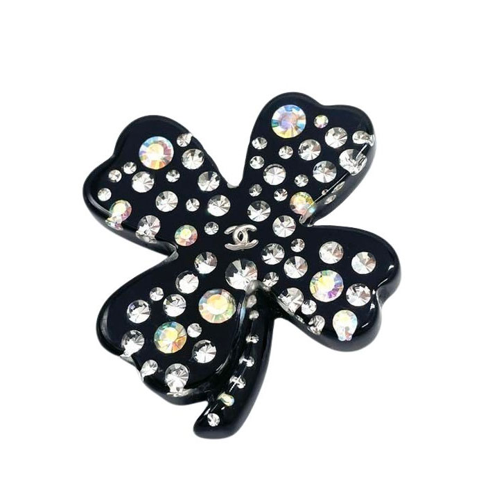 CHANEL シャネル ブローチ 四つ葉 クローバー ココマーク ラインストーン ブラック 05A