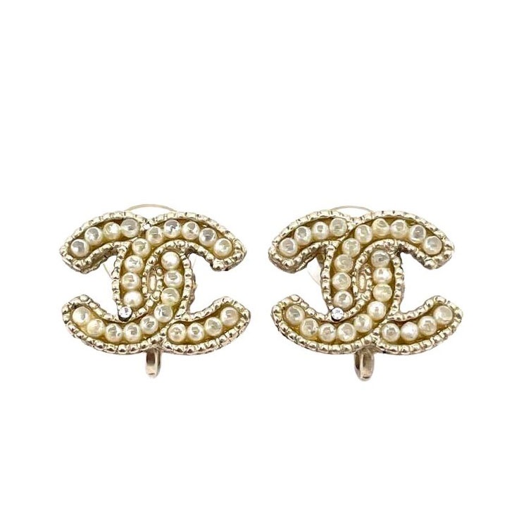 CHANEL シャネル イヤリング ココマーク フェイクパール ラインストーン ゴールド A12A