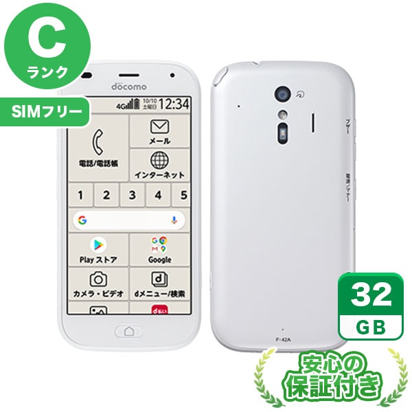 【SIMフリー】らくらくスマートフォン F-42A ホワイト [32GB] 本体 [Cランク] |中古Androidスマホ 当社3...