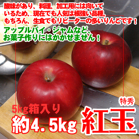 紅玉りんご 特秀 約4.5kg 生食でもお菓子など加工するのにも最適!