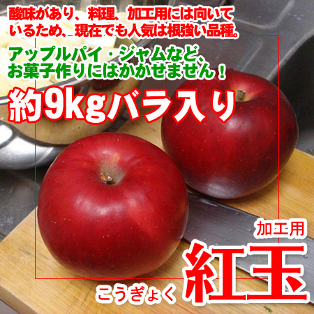 紅玉りんご 【訳あり】【サビ・キズあり】 約9kg加工用バラ入り お菓子作り・お料理にも最適なりんごです♪ 送料無料