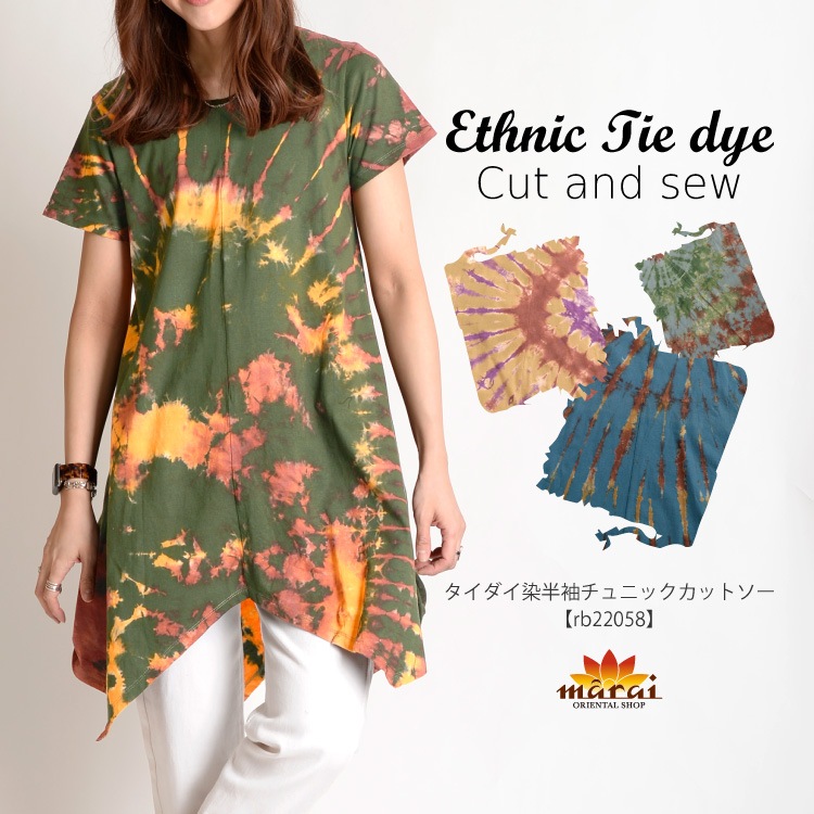 ラフに鮮やかさを。 タイダイ染半袖チュニックカットソー