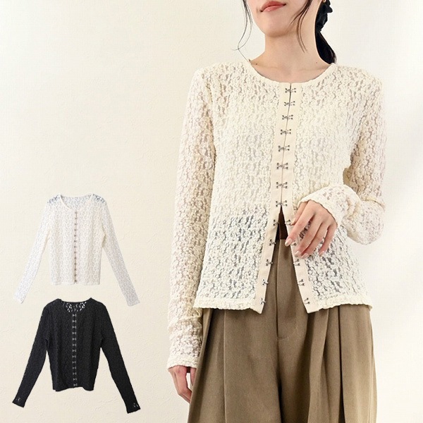 ストレッチレースフロントホックトップス