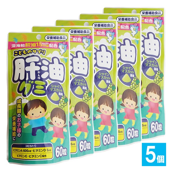 【栄養補助食品】こどものサプリ 肝油グミ シャインマスカット風味 60粒×5個セット【タムラ活性】深海さめ肝油15mg配合 成長期...