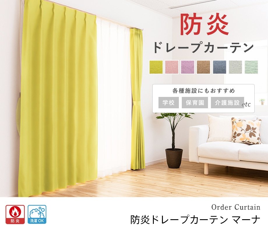 【数量限定】光をほどよく通す防炎ドレープカーテン「マーナ」(イエローグリーン)