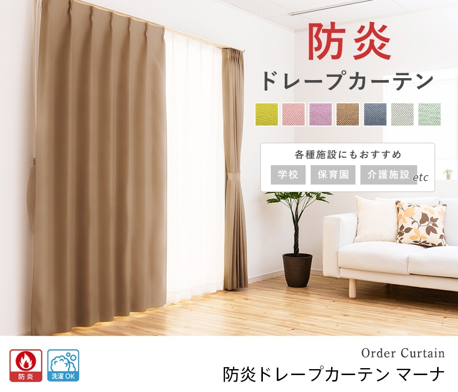 【数量限定】光をほどよく通す防炎ドレープカーテン「マーナ」(ブラウン)