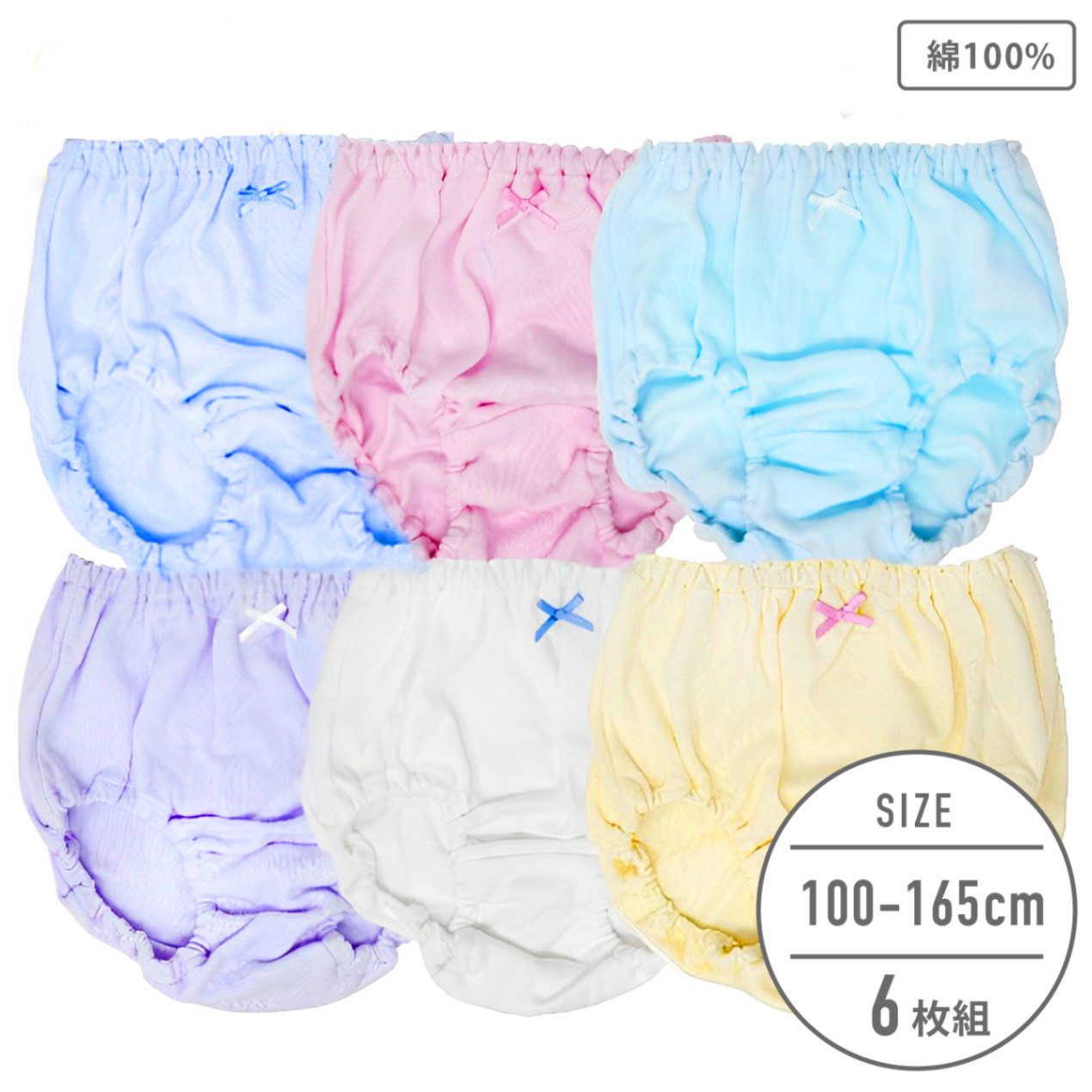 【女の子】【下着】キッズジュニアショーツ 6枚組 無地カラー/リボン 100~165cm【綿100%】