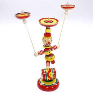 ピエロの曲芸独楽回し。 ぴえろさーかす 独楽3個 山形県の木地玩具