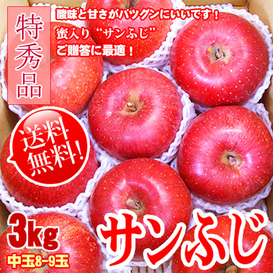 サンふじ 特秀 贈答品 中玉 3kg8-9玉 送料無料