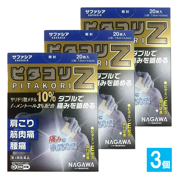 【第3類医薬品】★ピタコリZ 20枚入×3個セット【ナガワ薬品】【大協薬品工業】サリチル酸メチル・l-メントールがWで痛みを鎮める...