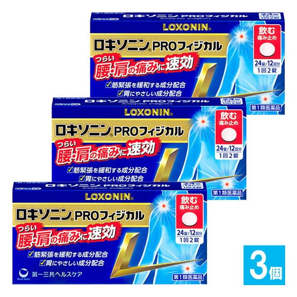 【第1類医薬品】★ロキソニンPROフィジカル 24錠×3個セット【第一三共ヘルスケア】つらい腰・肩の痛みに速攻 飲む痛み止め 解熱...