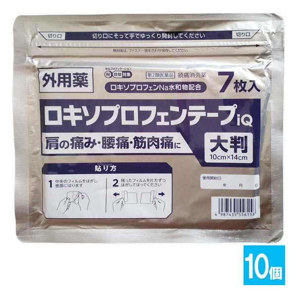 【第2類医薬品】★ロキソプロフェンテープiQ 大判 ラミネート袋(箱なし) 7枚入×10個セット【ラクール薬品】肩こり 肩コリ 腰...
