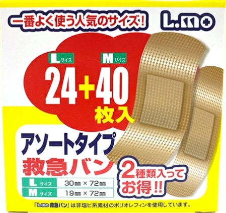 エルモ救急バン M40枚+L24枚 絆創膏 ばんそうこう 柔らかい 粘着性 ムレ 蒸れ カブレ かぶれ アソート ケガ 怪我