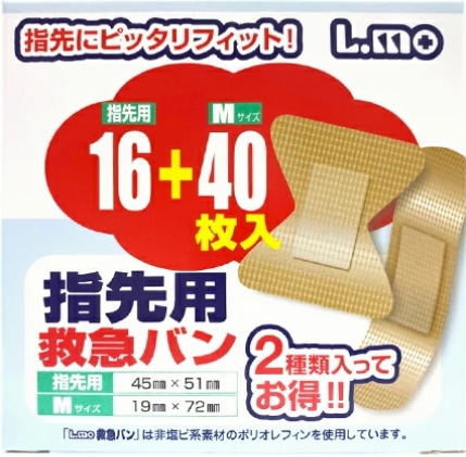 エルモ救急バン M40枚+指先16枚 絆創膏 ばんそうこう 柔らかい 粘着性 ムレ 蒸れ カブレ かぶれ ぴったり フィット ケガ...