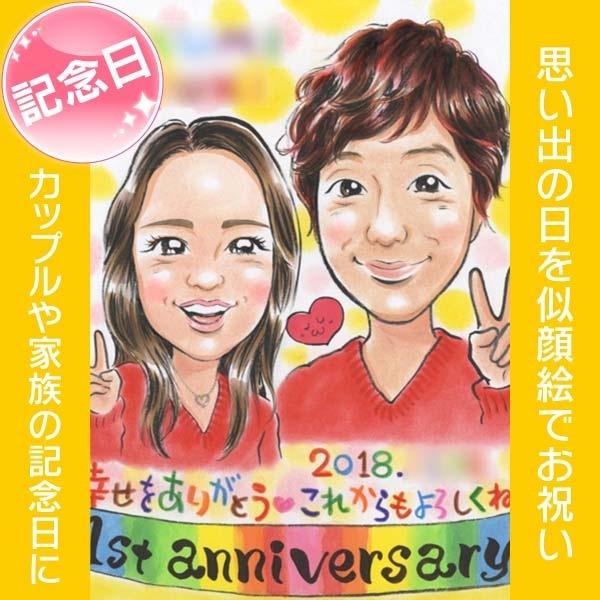 幸せな記念日には、お二人の愛を描いたカップル似顔絵を贈りませんか。ぽん太