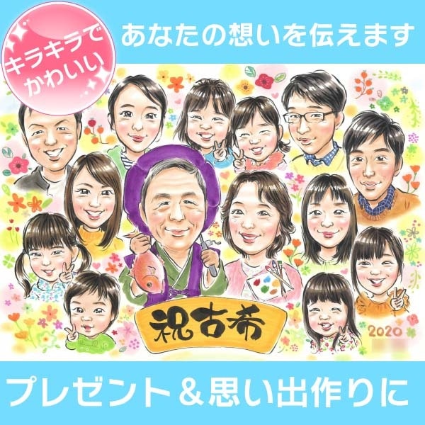 思い出に残る古希のお祝いに家族の似顔絵を贈りませんか?一生に一度の節目を飾る特別なプレゼントで家族の絆を深めましょう。誕生日やお祝...