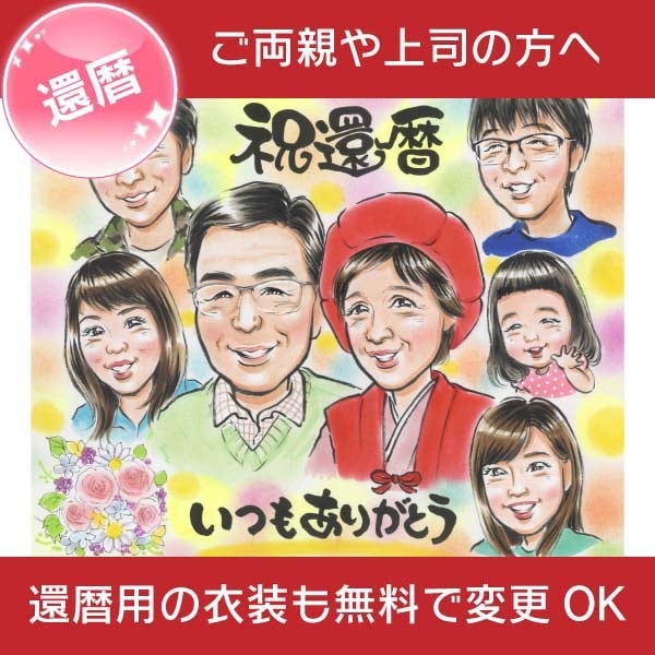 還暦 60歳のお祝いにペットも一緒の家族の似顔絵 MISACO お祝い プレゼント ギフト 贈り物 贈呈用 おすすめ 祖父 祖母 ...