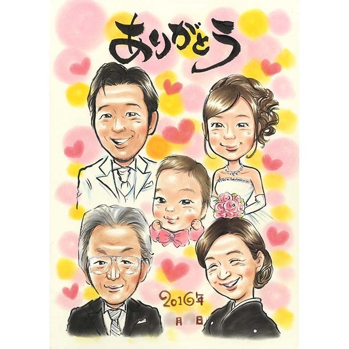結婚式の感動を似顔絵に!両親への贈り物に感謝の気持ちを込めて。涙で溢れる感動の瞬間を永遠に。ぽん太