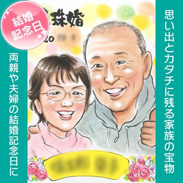 30年目の結婚記念日 真珠婚式 お子様からご両親に贈り記念の似顔絵 MISACO 結婚記念日 金婚式 結婚50周年 結婚10周年 ...