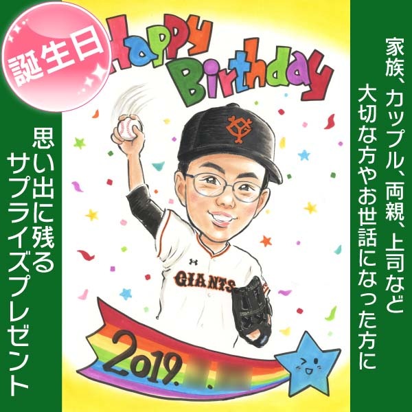 ユニフォーム姿の似顔絵で誕生日を祝おう。ぽん太