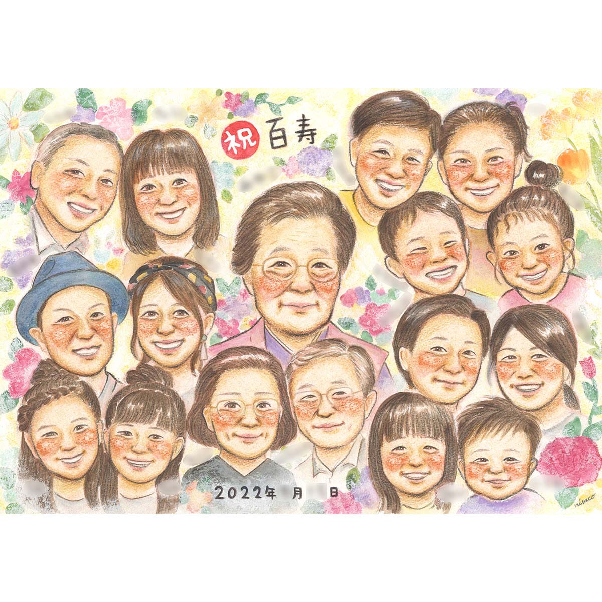 みんなでわいわい盛り上がれる最強プレゼント!百歳のお祝い家族似顔絵 百寿 の記念すべきお誕生日にはとっておきの思い出に残る贈り物を...