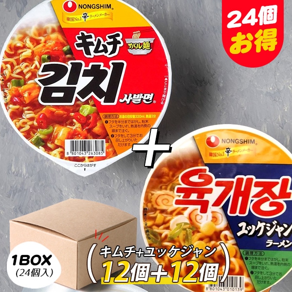 [農心] キムチサバル麺 カップ12個+ユッケジャンカップ麺12個 日本語版 / 1BOX(24個入) ノンシム 韓国らーめん ...