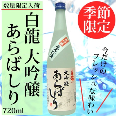 白龍 大吟醸あらばしり 720ml 白龍酒造しぼりたての大吟醸の原酒をそのまま蔵出し