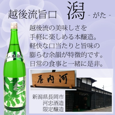越後流旨口 本印 潟(がた)本醸造1.8L河忠酒造日本酒 新潟 本醸造越後銘門酒会限定酒 晩酌、家飲におすすめ