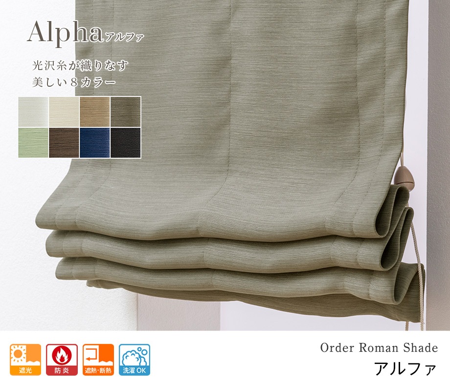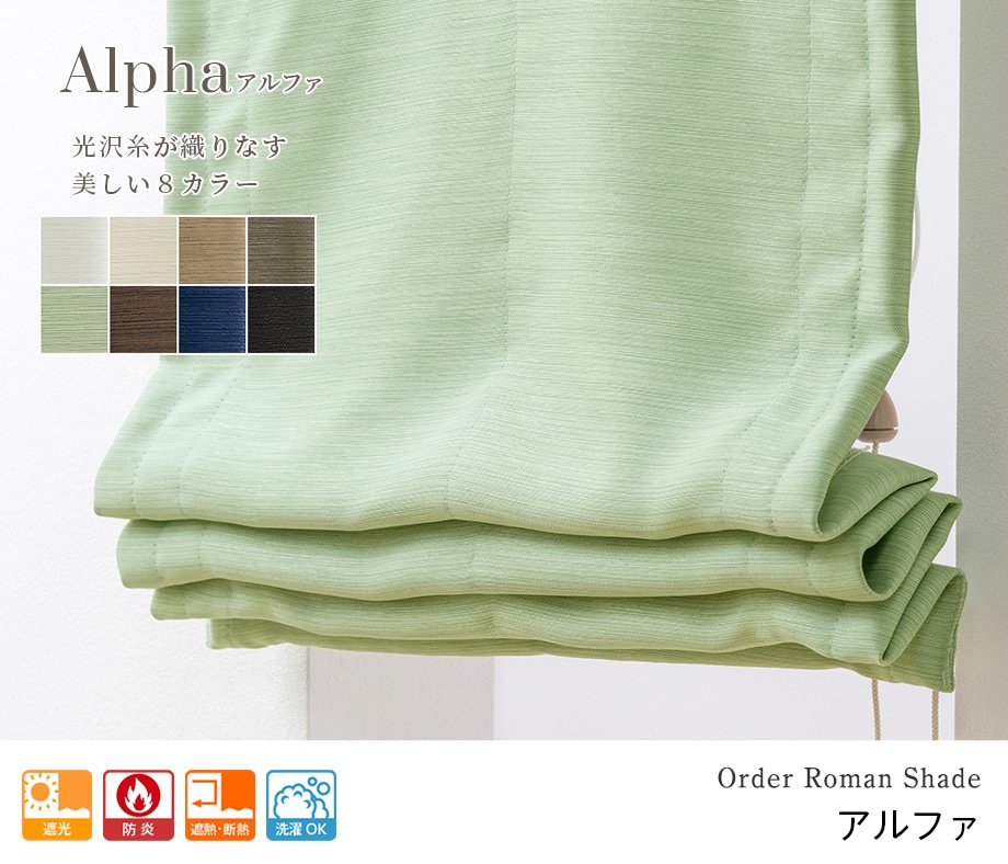 【幕体のみ】主張しすぎない光沢と繊細な織り感が美しい防炎遮光ローマンシェード「アルファ」防炎タイプ グリーン(1級遮光)【買い替え...