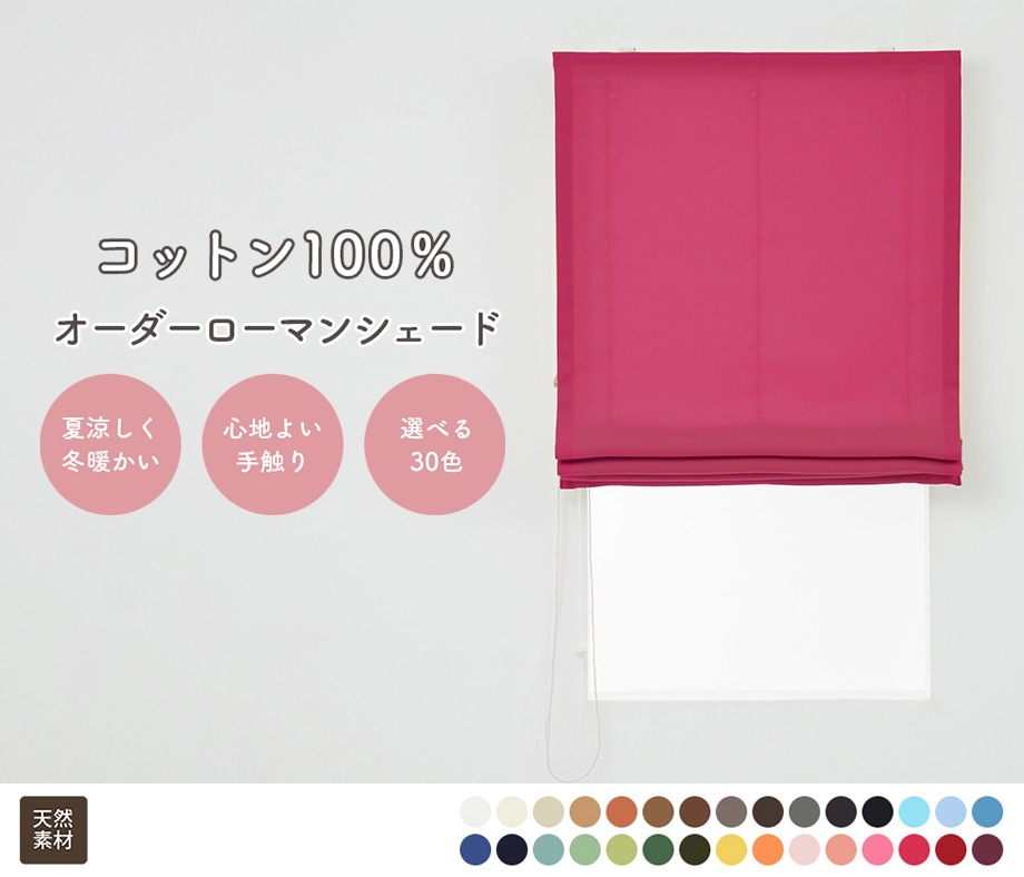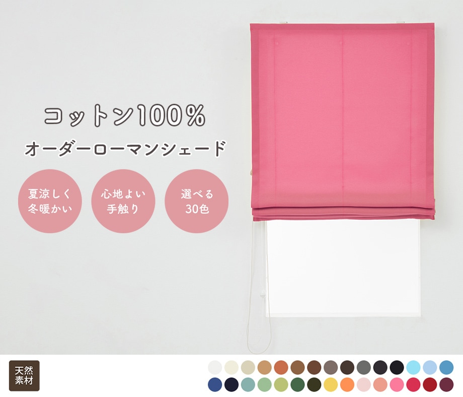【幕体のみ】綿(コットン)100% 無地 さらっとした触り心地のオックス織り天然素材ローマンシェード チェリーピンク【買い替え用】