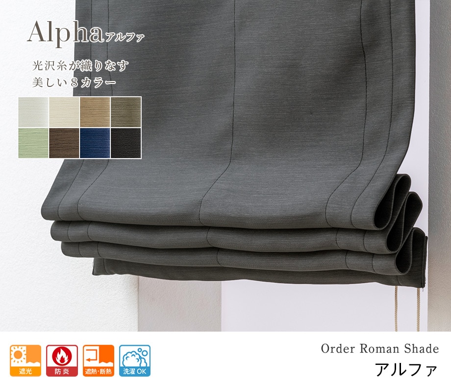 【幕体のみ】主張しすぎない光沢と繊細な織り感が美しい防炎遮光ローマンシェード「アルファ」防炎タイプ チャコールブラック(1級遮光)...