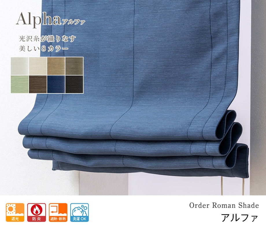 【幕体のみ】主張しすぎない光沢と繊細な織り感が美しい防炎遮光ローマンシェード「アルファ」防炎タイプ ネイビー(1級遮光)【買い替え...