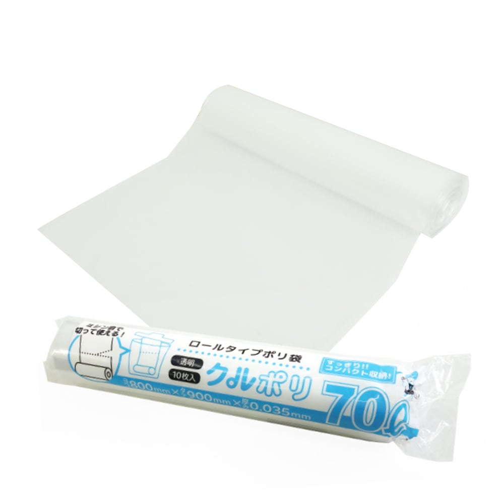 ロールタイプ ポリ袋 (ミシン目付) 70リットル 透明 0.035mm厚(10枚×30冊)