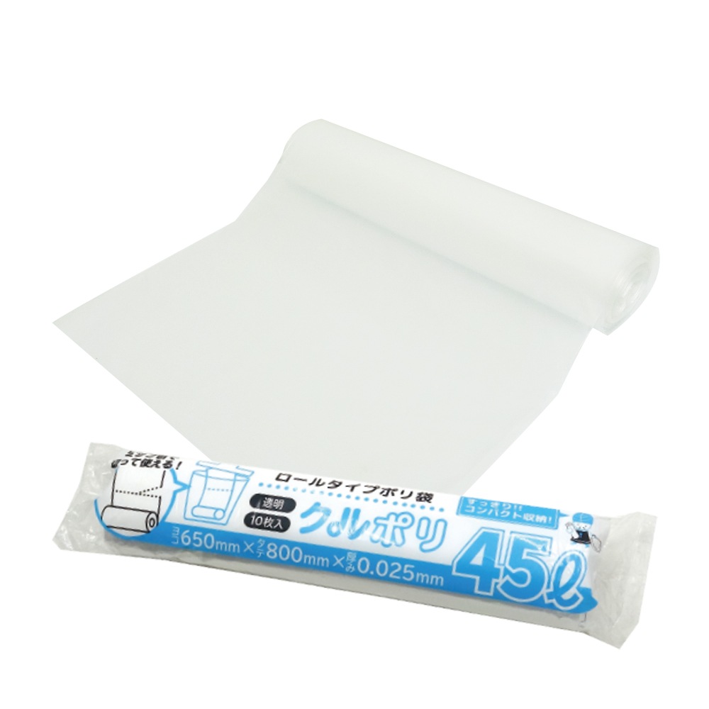 ロールタイプ ポリ袋 (ミシン目付) 45リットル 透明 0.025mm厚(10枚×50冊)