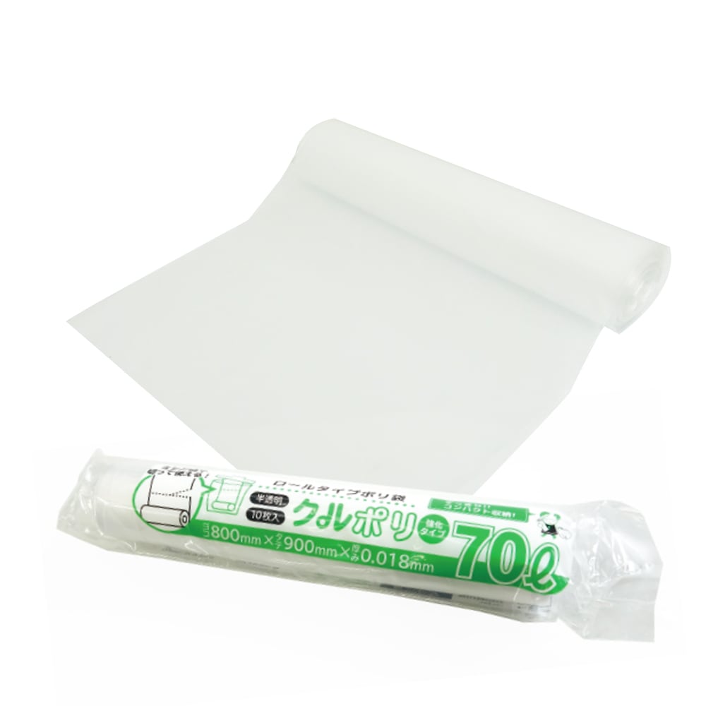 ロールタイプ ポリ袋 (ミシン目付) 70リットル 半透明 0.018mm厚(10枚×50冊)