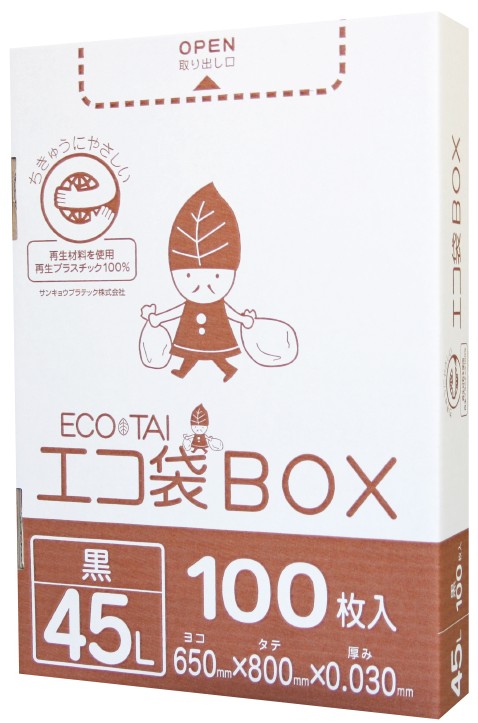 ごみ袋 箱タイプ 45リットル 黒 0.030mm厚(100枚×6箱)