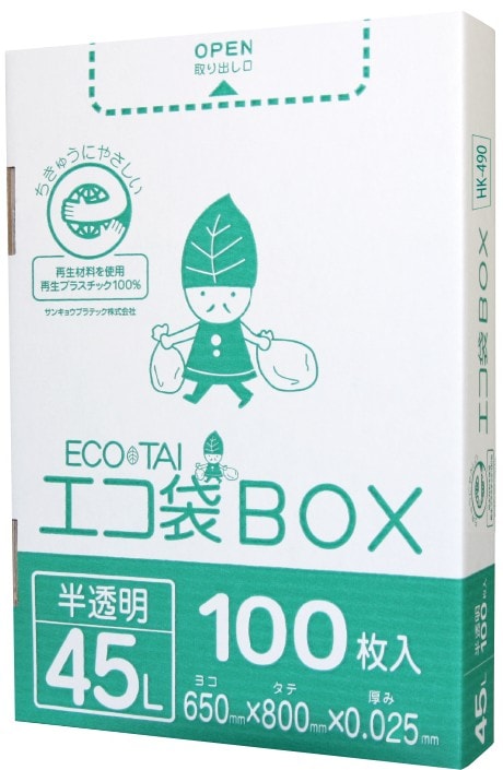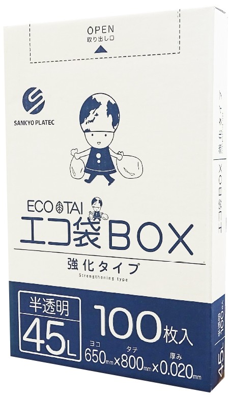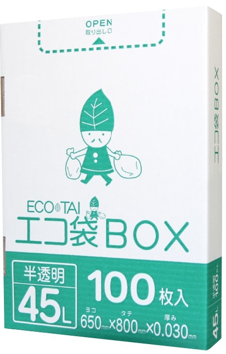 ごみ袋 箱タイプ 45リットル 半透明 0.030mm厚(100枚×6箱)